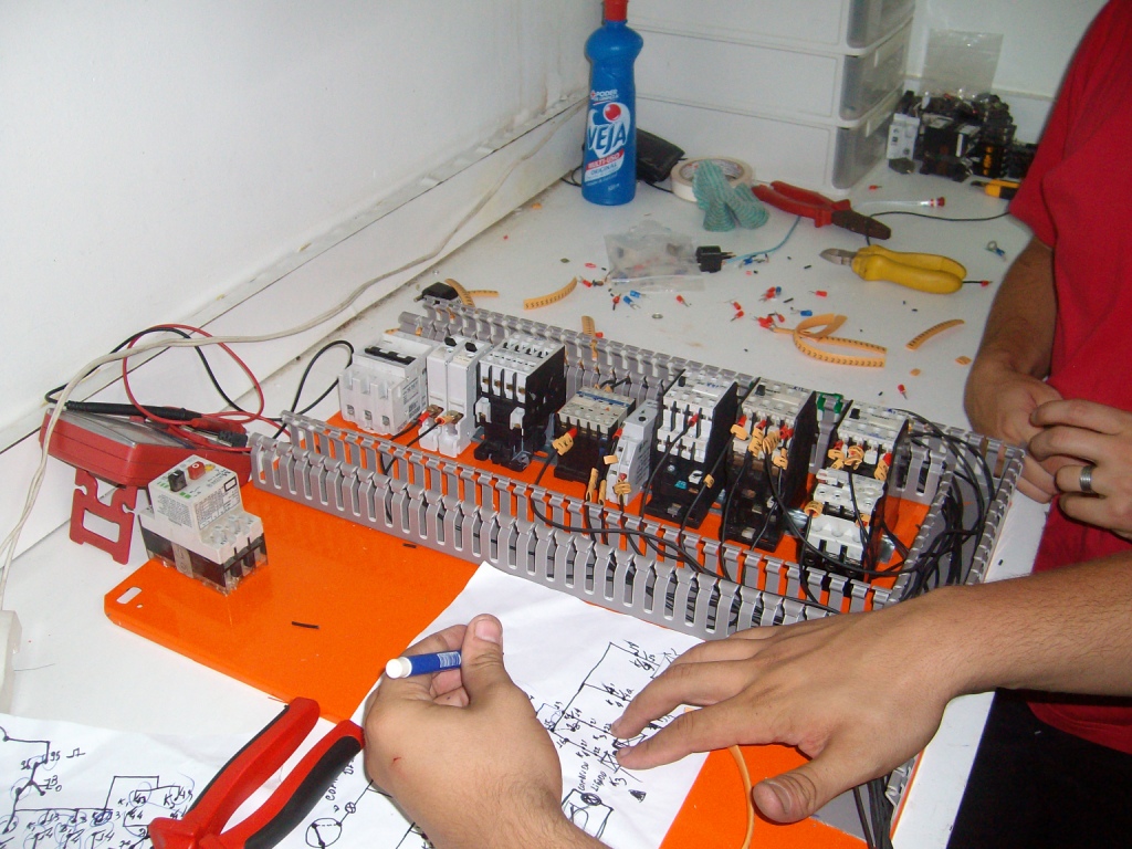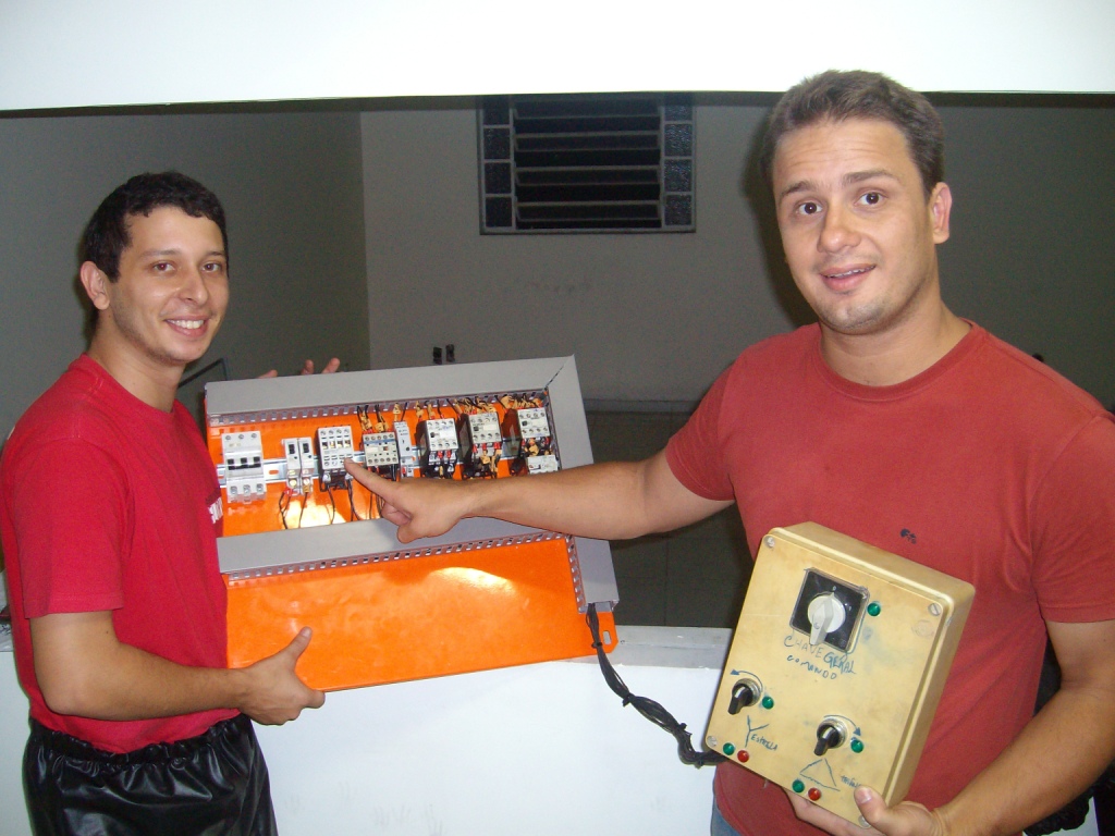 Nesse artigo segue fotos e vídeos sobre o Trabalho do Matheus Dutra e Tiago Santos onde eles montam um sistema de comando Estrela Triangulo com Reversão, Sistema todo sinalizado. No circuito você encontrará uma contactora a mais, pois uma delas não possui contatos auxiliares.