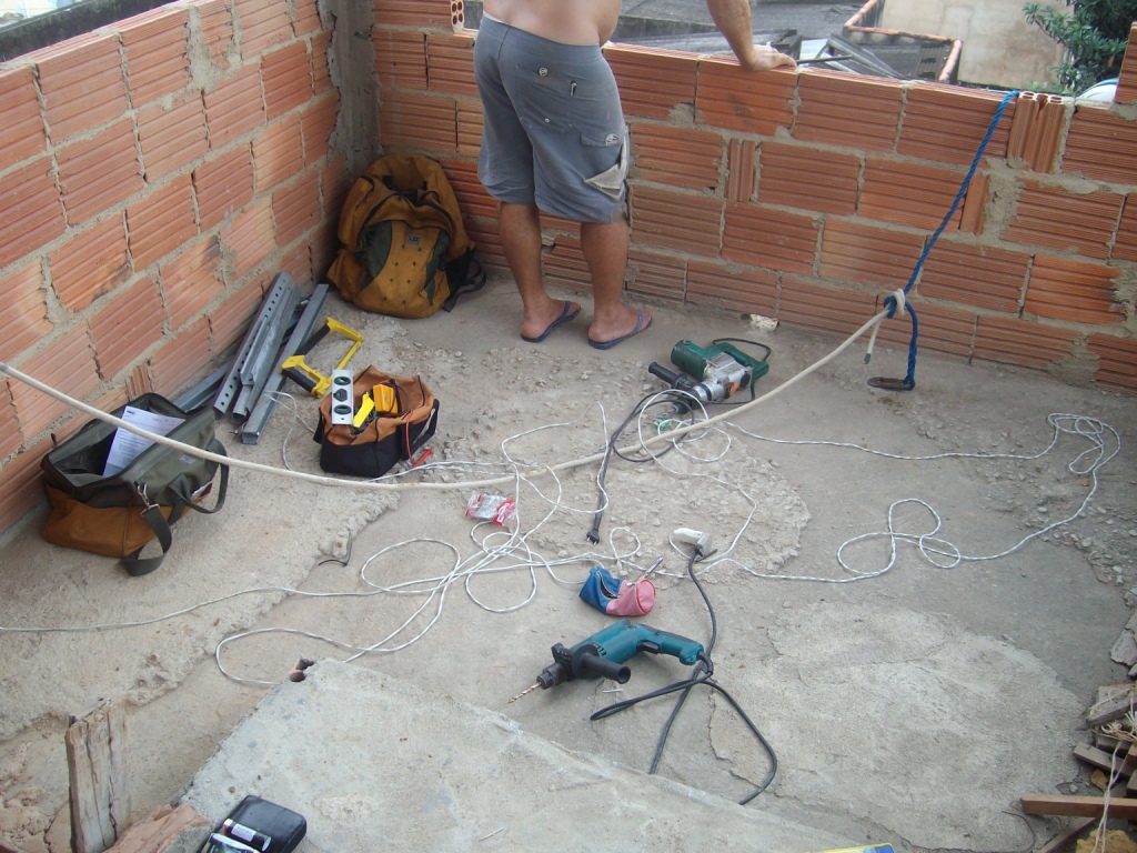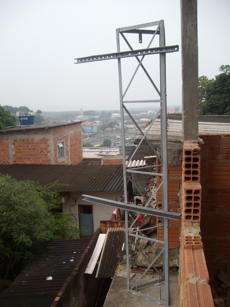 Primeiro a torre, depois os braços(perfilado), depois os tubos, caixa preparada.