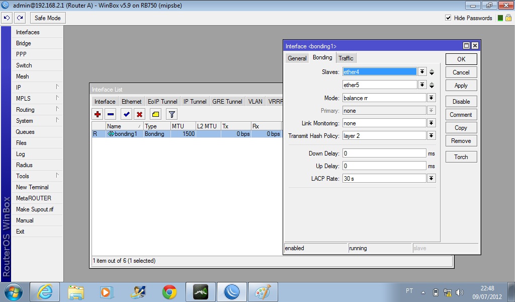 O Bonding (Link Agregation) trata-se de um recurso do Mikrotik no qual você junta a capacidade de link de duas ou mais interfaces.