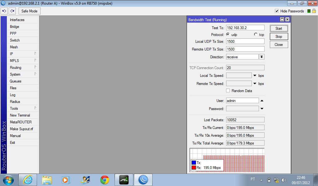 Para realizar esse teste, utilizei duas RB750 nas quais e faço a união das portas 5 e 4 em uma unica interface.